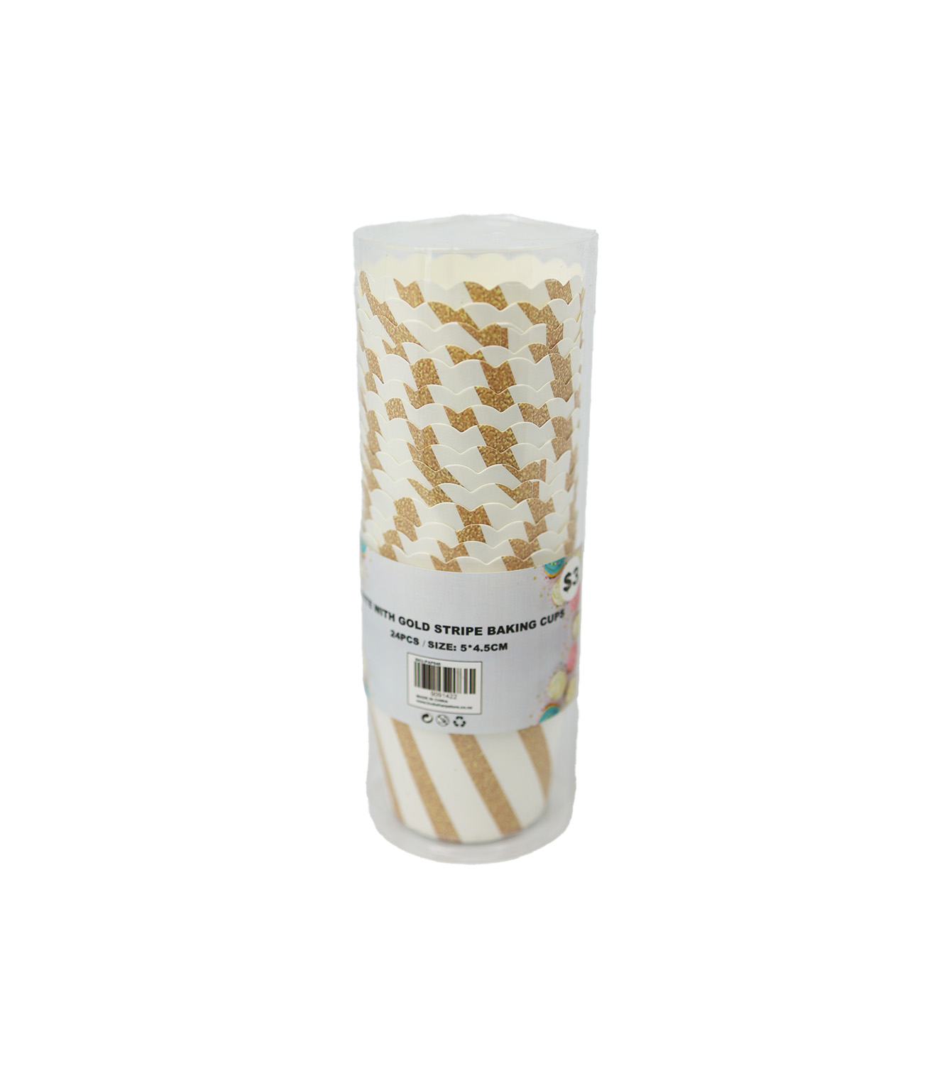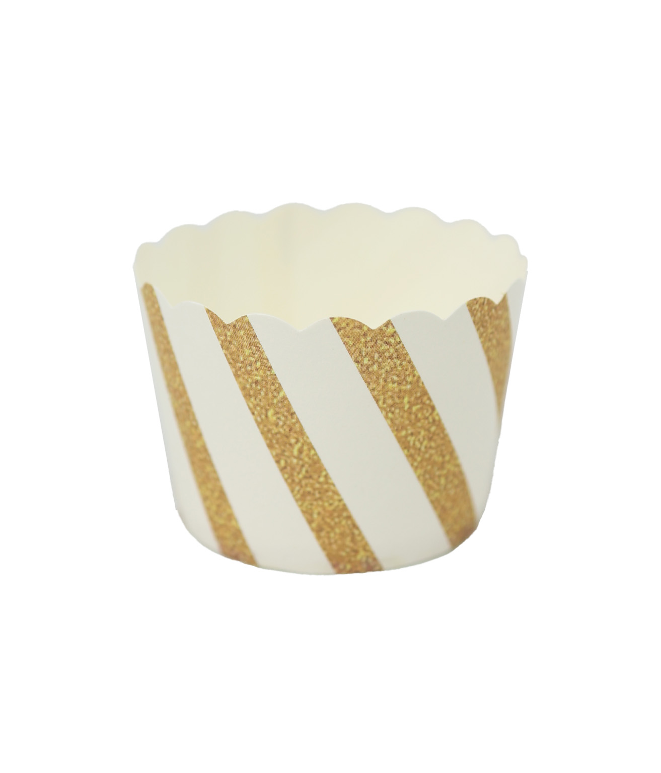 Add elegance and charm to your baking with these White with Gold Stripe Baking Cups.