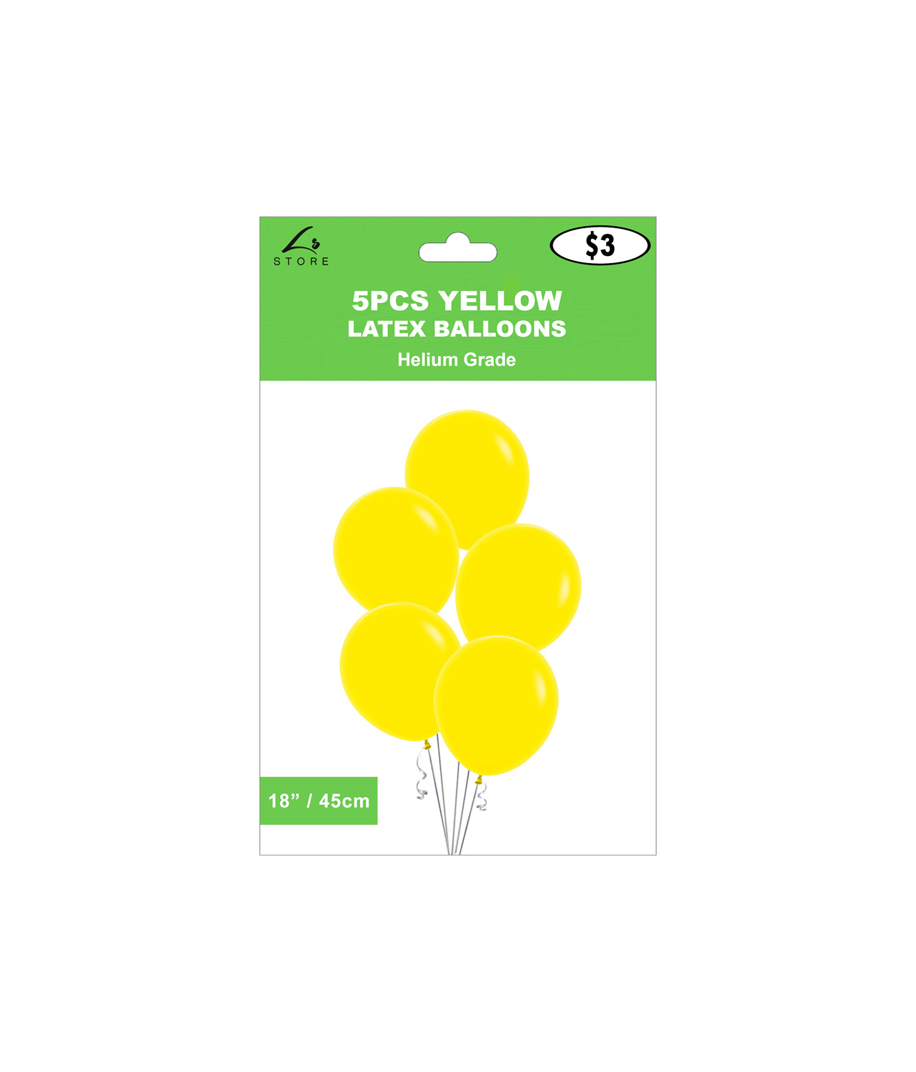 Our latex balloon pack includes a pack of 5 balloons in 18in sizing.