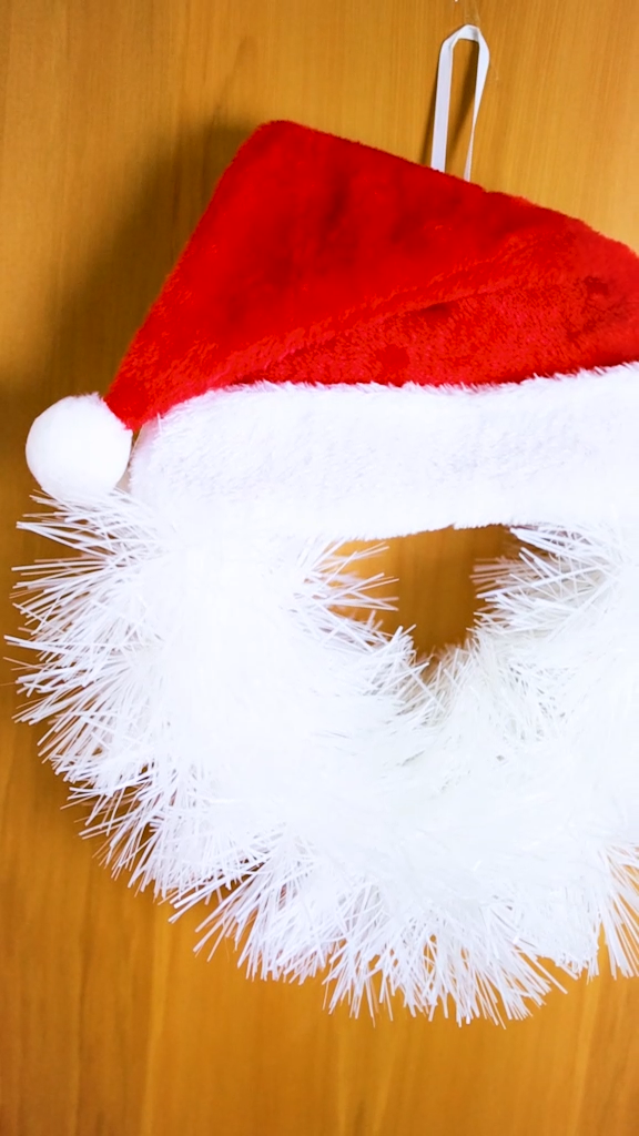 - Make a mark on the styrofoam wreath for where you want to place the santa hat.
