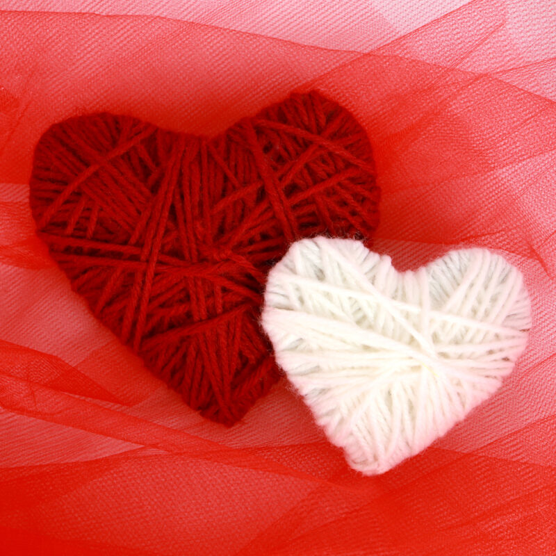 Tape down the beginning of the yarn roll in the middle of the cardboard heart to keep it in place.